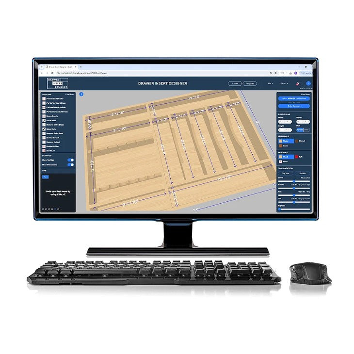 Our 3D design tool makes it simple to create drawer inserts tailored to your exact specifications. Choose from various sizes, materials, and layouts, or start with one of our templates. You have full control over every detail, ensuring every insert fits perfectly.